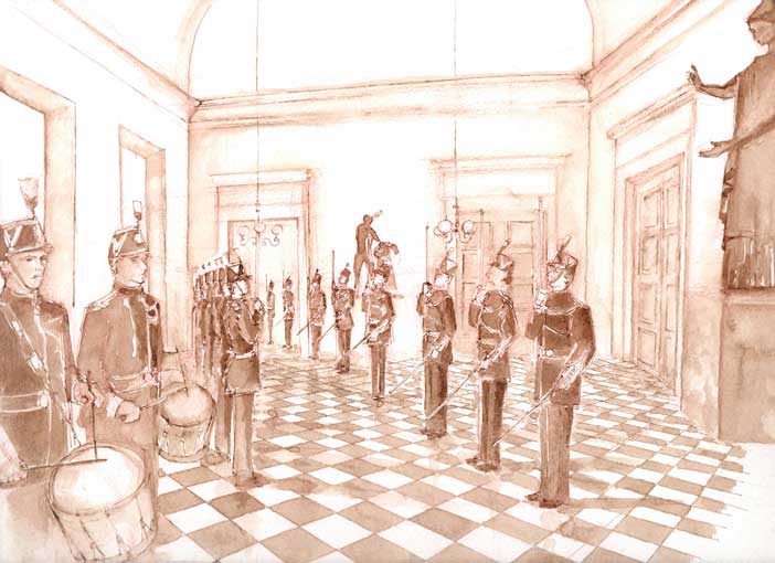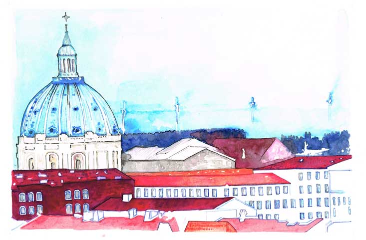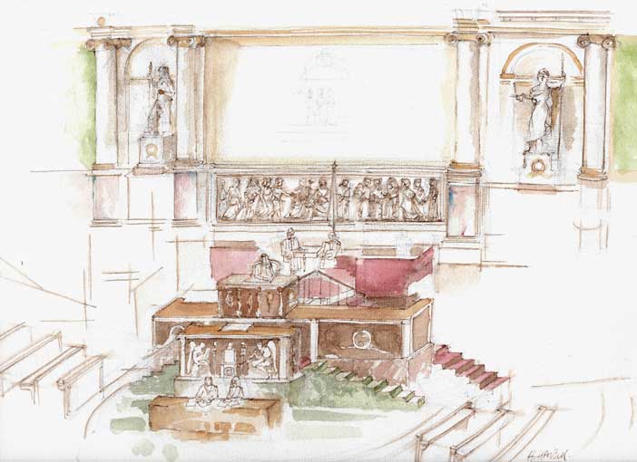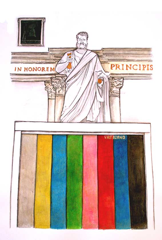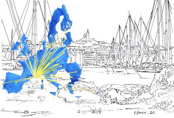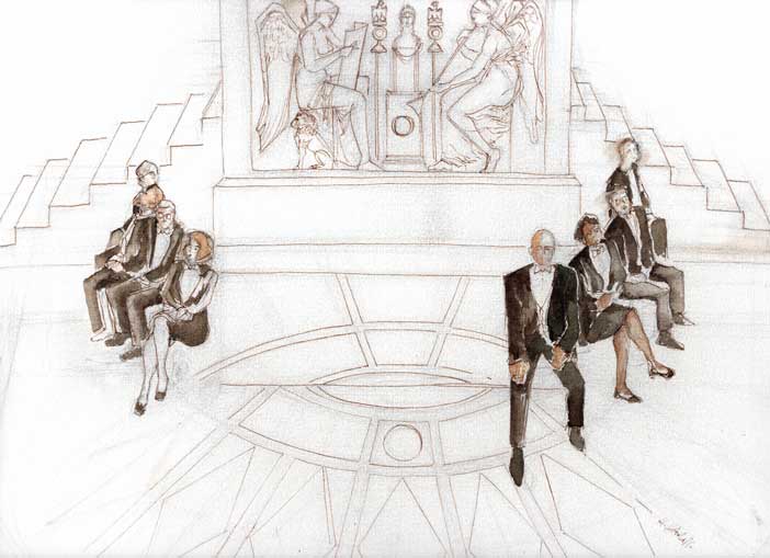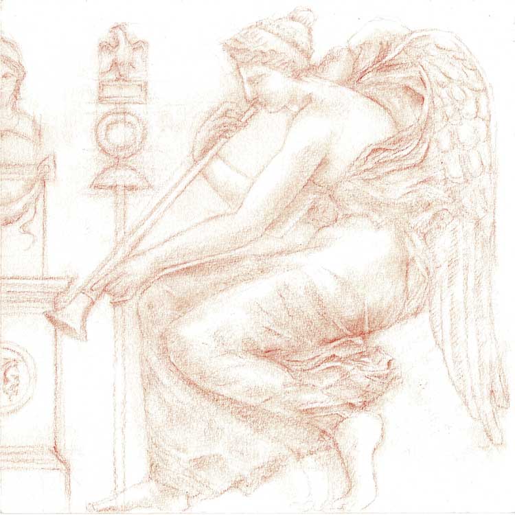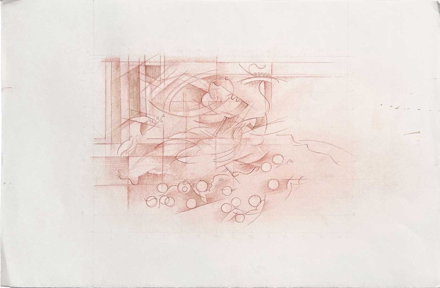 "Le choix de ce dessin consultable au cabinet d'art graphique du Louvre est une référence à l'ancien testament, plus particulièrement au chapitre 8 de la Genèse. "Le septième mois, le dix-septieme jour du mois, l'arche s'arrêta sur la montagne d'Ararat" (...)